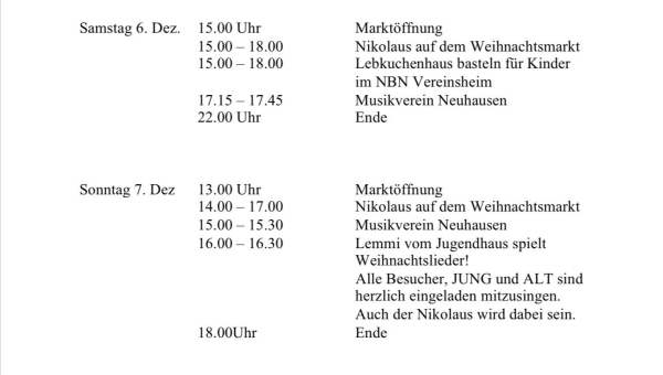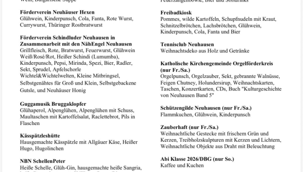 • die Wahrnehmung der gemeinsamen Interessen der Neuhausener, Vereine, insbesondere Verhandlungen mit der Gemeinde, Behörden,Verbänden, Vereinigungen etc.)